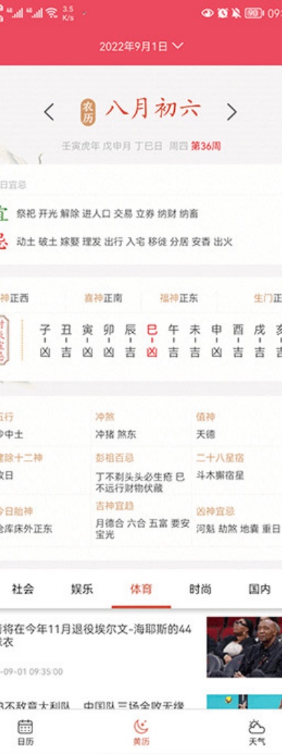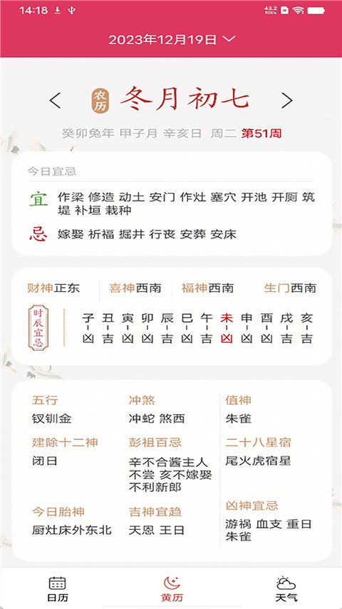 4、在黄历功能中,可查看每天详细的宜忌事项与吉凶信息内容参考。