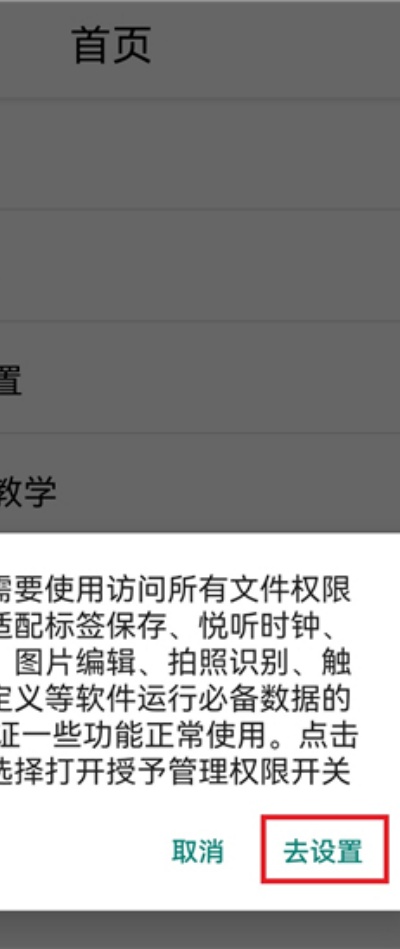 2、首次使用语音设置功能时,需要进行权限授权,按照提示点击“去设置”进入系统权限管理界面完成授权操作。