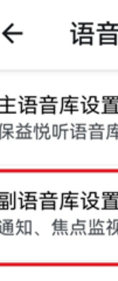 3、完成授权后进入语音设置页面,选择第二项“副语音库设置”进入多语音资源管理功能模块。