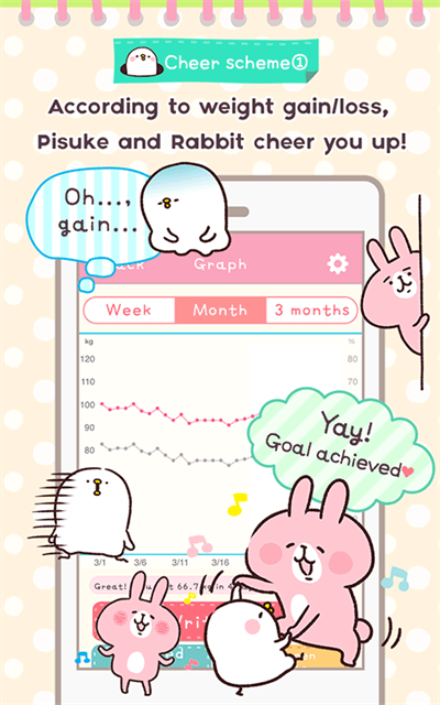 Casual Dieting安卓中文版是一款以轻松治愈为核心的体重管理应用,在日本拥有较高人气,并支持繁体中文界面。应用由知名插画师卡娜赫拉授权,融入经典形象“粉红兔兔与P助”,将日常体重记录转化为富有趣味的互动体验,让管理过程不再单调枯燥。
