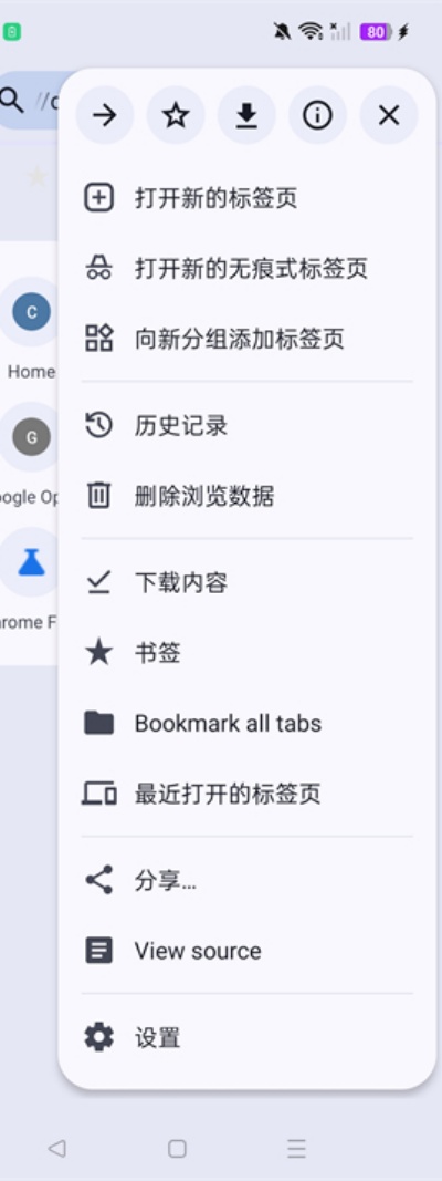 4、进入右上角的菜单选项,你可以轻松进行清除数据、查看历史记录以及开启无痕浏览等操作。