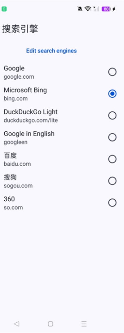 5、在菜单中找到设置功能,用户可以根据个人习惯自由切换不同的搜索引擎提升使用体验。
