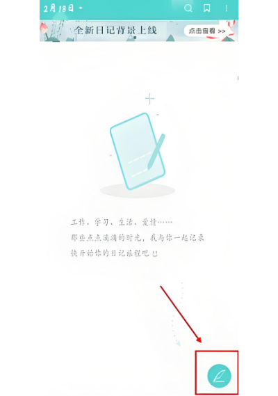 1、打开时光日记本进入首页界面后,找到右下角的编辑图标,点击进入编辑页面,开始撰写新日记。