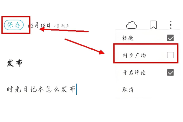 3、在弹出的选项中,选中同步广场,确认无误后点击保存,即可将日记发布到广场分享。