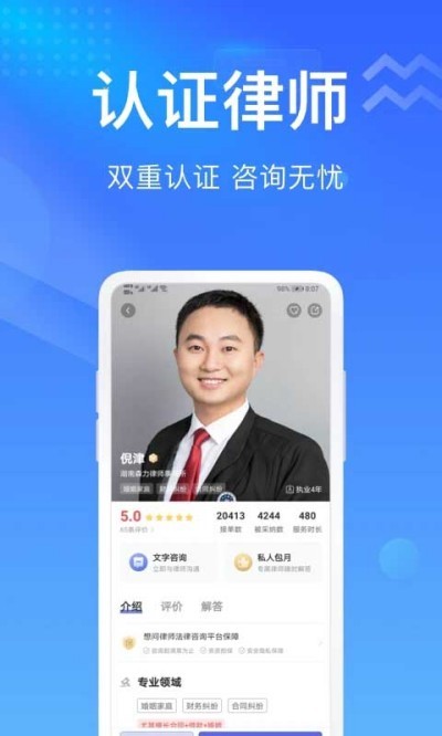 1、搭建严格律师认证机制,核验正规执业证件,严格把控入驻律师资质,保障服务专业正规。