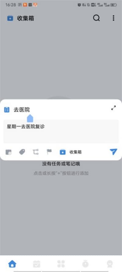 1、点击首页右下角的加号,将脑海中琐碎的待办事项一键录入,开启井然有序的一天。