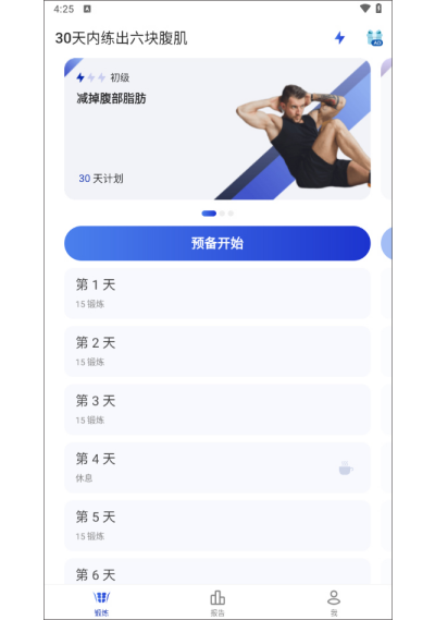 30天内练出六块腹肌app是一款备受健身爱好者青睐的手机健身工具,核心功能是帮助用户快速锻炼出六块腹肌,同时提供一系列系统科学的锻炼计划,打破健身减肥的枯燥感,让健身过程轻松有趣。这款官方版软件内置海量优质健身课程,搭配详细的动作指导,用户每天只需投入少量时间,跟随课程逐步练习,就能稳步推进健身目标。软件支持自定义锻炼提醒,同时自动记录锻炼进程与相关数据,方便用户追踪进度、调整计划,高效达成健身效果。