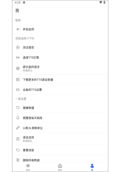 4、点击“我的”选项,进入设置界面,可配置软件基本功能,比如开启“每日锻炼提醒”,避免错过锻炼时间。