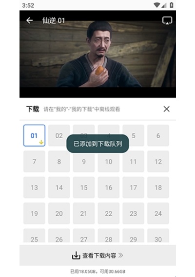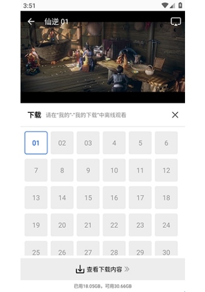 1、打开目标影片进入播放界面,找到界面中的下载选项并点击,根据需求勾选要下载的剧集或片段,确认选择后提交下载。