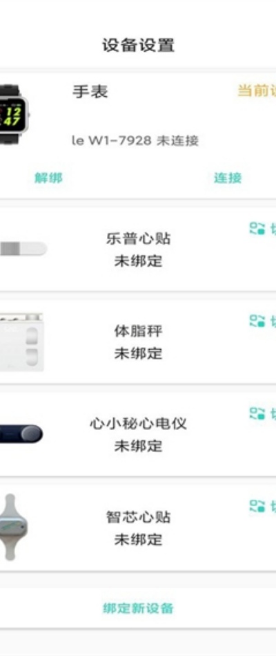 5、在设备管理板块中可查看当前已绑定的智能设备,并支持快速切换或新增绑定设备进行健康数据同步。
