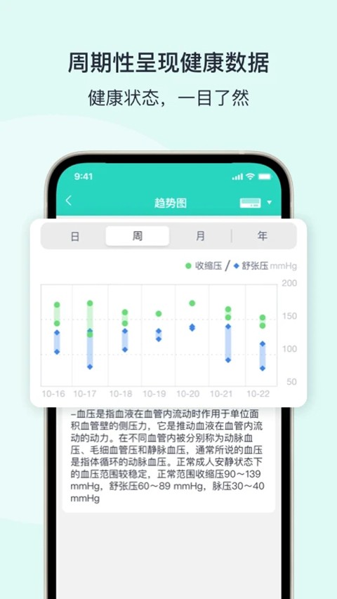 2、数据趋势分析:通过图表展示健康变化趋势,使身体状态更加直观并便于长期观察与管理调整。