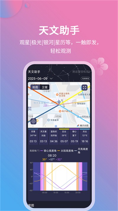 5、内置天文助手,可查询银河起落、星图、日月出没及近期各类天文现象。