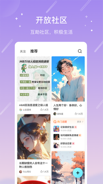 覆盖星座、情感、生活等各类热门话题,用户可随时发帖讨论,拓展社交视野。