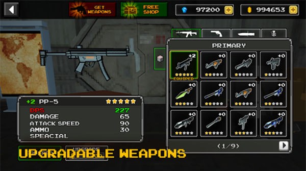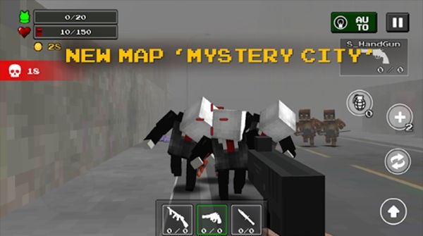 1、采用像素卡通风格构建末日丧尸世界,整体画面简洁清晰又不失紧张氛围,让玩家在轻松视觉下体验生存射击的刺激过程