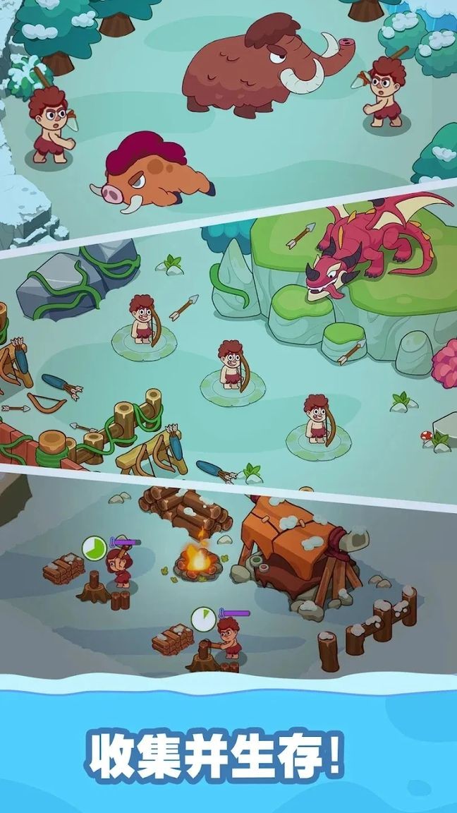 组建探险小队向村庄周围的黑色区域进发,可能发现富含稀有资源的矿脉,也可能遭遇剑齿虎等巨型掠食者,每一次出发都是冒险。