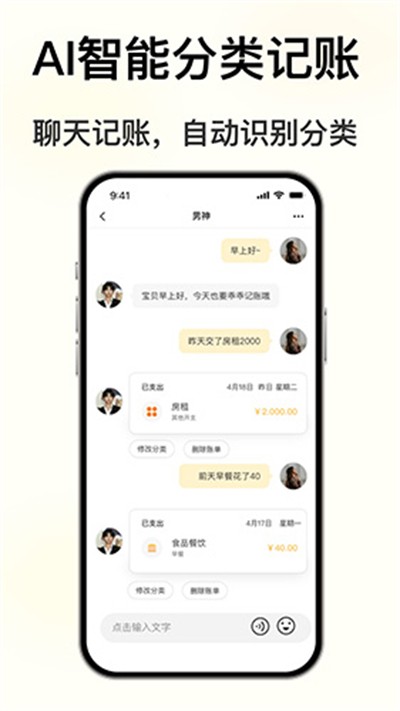1、进入记账管家对话界面,直接输入文字即可快速录入收支账目,发送记录内容后系统会自动生成分类账单,还能随时修改分类或是删除已记账单。