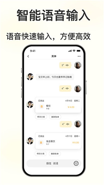 1、语音识别精准抓取收支信息,口头描述金额与用途即可完成记录,省去手动打字步骤,碎片化场景也能快速完成记账,适配日常各类使用场景。