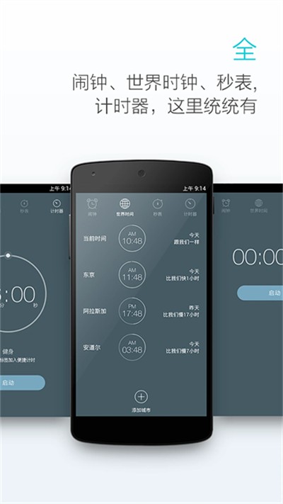 整合闹钟、计时、世界时钟、秒表四大核心功能,无需切换多工具,满足多样化时间管理需求。