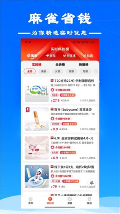 【省心体验】平台整合优质货源与优惠福利,省去多方比价找券的时间,轻松实现高效省钱的购物模式。