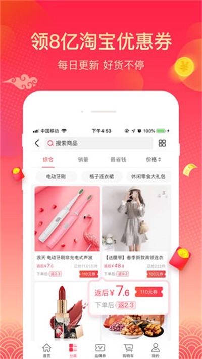 4、进入淘宝网购特权专属页面,支持输入商品标题一键搜优惠,超多不同品类好物都能领券立减,下单就可享受返利,轻松网购省下不少日常开销。