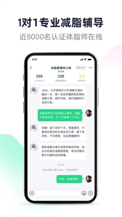 配备专业减脂师提供专属辅导,普及健康减脂知识,规避错误减重方式。