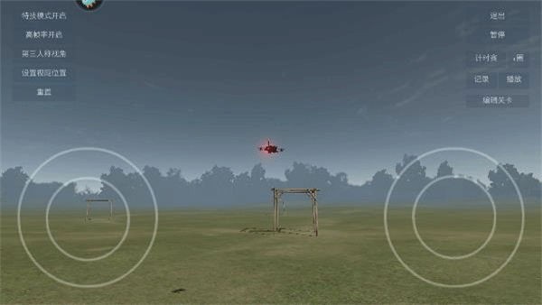 5、进入地图后,你会看到屏幕上分布着两个醒目的虚拟操作杆,它们分别控制无人机的方向与动力,是你完成各种高难度动作的关键。