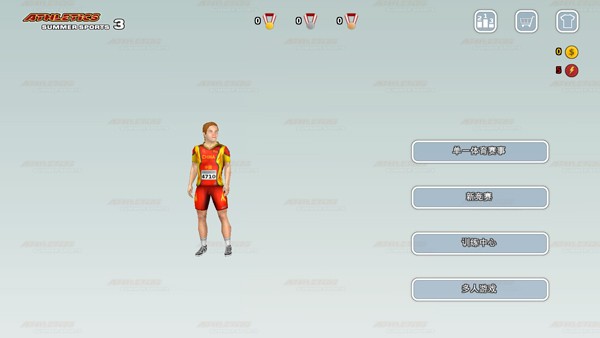 1、打开《田径运动会3》手游后,进入主界面,点击【单一体育赛事】选项,在众多比赛类型中选择想要参与的赛事模式。