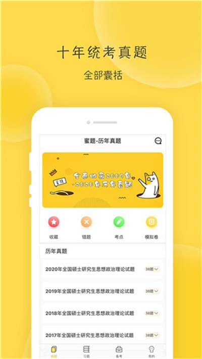 1、打开蜜题考研政治APP,在真题页面选择一套历年真题。