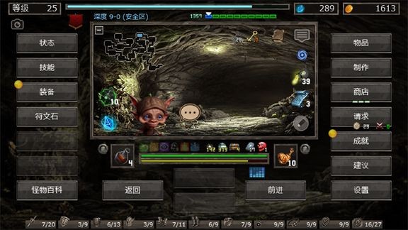 4、完成搜索后,点击前进按钮,继续深入洞穴,挑战更深层的关卡。