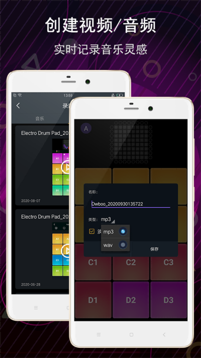 创作过程可实时试听效果,完成编辑后一键保存音频文件,存储至手机本地。
