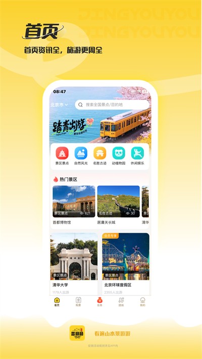 2、划分自然风光、名胜古迹、动植物园、景区景点等展示板块。分类清晰规整,快速定位偏好内容,免去逐一筛选的步骤。