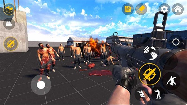 2、进入游戏后,屏幕上会显示一套直观的虚拟操作按键。通过左侧的摇杆可以灵活控制人物的前后左右移动,而右侧的功能键则支持跳跃、下蹲、瞄准以及射击等操作。整体手感顺畅自然,动作衔接流畅,玩家可以在不断练习中熟悉操作节奏,从而更精准地完成移动与战斗。