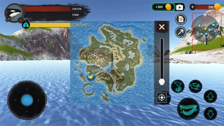 点击右上角地图可查看海域范围与周围生物分布位置,通过信息判断猎物或威胁方向,合理规划移动路线与捕食策略。