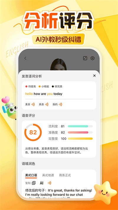 4、支持音素级纠音与智能语音评测功能精准识别发音问题并提供详细反馈帮助用户不断优化口语表达能力提升语言准确性