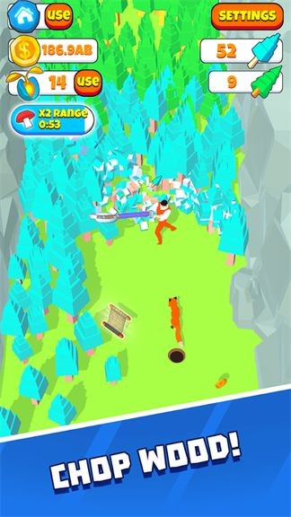 2、砍伐树木时收集特殊道具,使用道具提升伐木效率,加快木材收集速度,解锁更多资源。