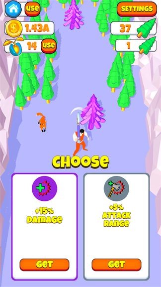 3、在伐木过程中获取增益道具,提升角色的伐木能力,更快地砍倒树木,积累更多木材。