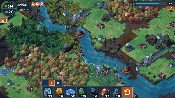 3、在地图中放置并连接不同设施,形成生态系统,点击确认完成建造,提升绿化进度。