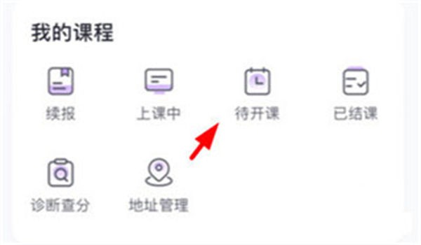 2、在学习页面中找到并点击【待开课】选项即可查看当前尚未开始的课程内容并根据个人学习安排进行合理排课提升学习效率与时间利用率