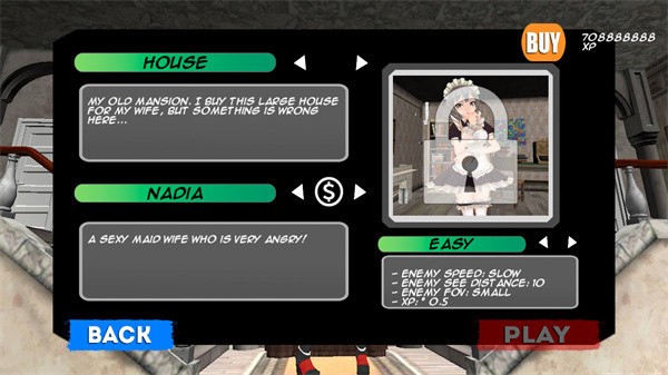 1、开局选择场景角色和难度,开始进入游戏,准备在老宅中开启惊险躲避挑战。