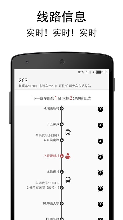 3、在站点列表中,用户还可以点击目标站点旁的“闹钟”图标,开启到站提醒功能,系统会在车辆即将到达时及时通知,避免错过公交