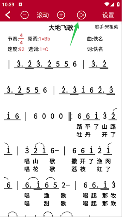 2、进入曲谱页面点击播放,即可开启实时动态演示,助您直观掌握旋律走向与演奏节奏。