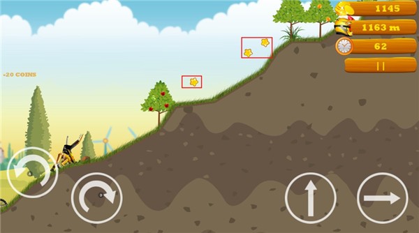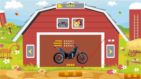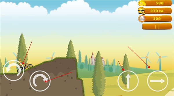2、进入关卡后,操控摩托车向前行驶,保持车身平衡,通过下坡路段。