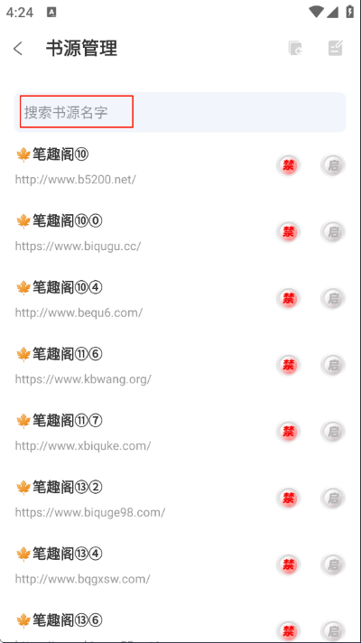 3、在搜索栏中输入您拟禁用的书源名称或关键词,快速定位目标选项。