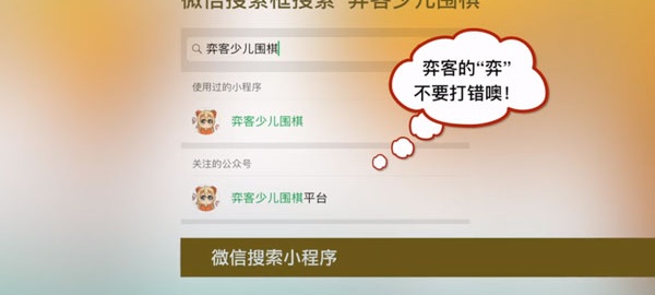 1、先下载安装好软件后,打开微信搜索“弈客少儿围棋”小程序并进入。
