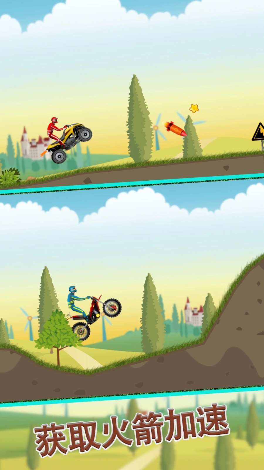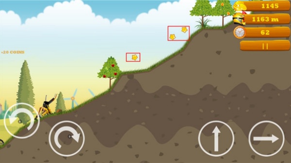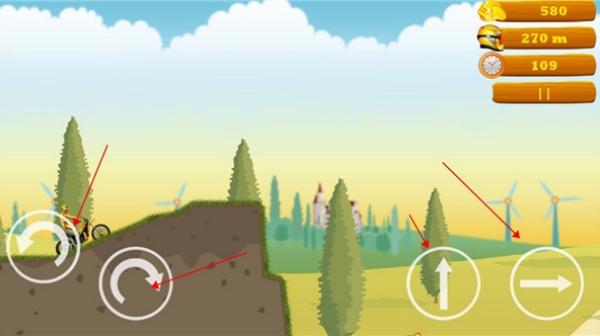 3、游戏过程中左侧按键控制摩托翻转,右侧按键用于跳跃与前进操作。