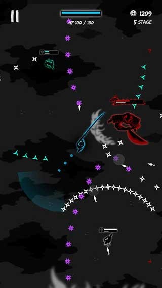 1、《Karl2》作为《Karl》的续作,延续了独特的“定格弹幕”玩法。所谓定格弹幕,就像定格动画一样,游戏是逐格进行的:在你操作之前画面保持静止,完成操作后才会展示结果,然后再次定格。这种机制让战斗节奏显得紧张而独特,玩家需要在每一步中仔细思考,才能在忍者的围攻下生存。忍者的手里剑就是游戏中的弹幕,它们种类繁多,有的需要攻击两次才能消除,有的会自动追踪,还有的无法抵挡,难度极高。