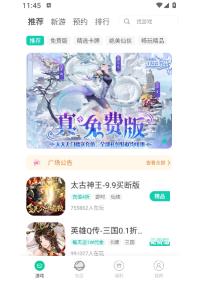 采用简洁明了的界面布局,视觉清爽,玩家可快速定位想要的游戏和功能,有效提升用户使用便捷度与体验感。