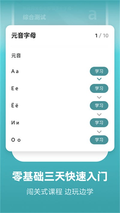 4、点击开始学习进入课程内容根据系统引导进行单词记忆发音练习与多题型训练逐步掌握俄语知识体系