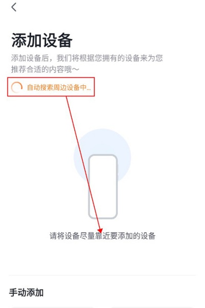 4、若自动搜索失败,可向下滑动页面选择手动添加,插上电源后等待系统扫描完成即可连接。