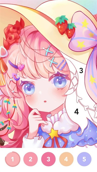 4、根据画面上剩余的未涂色区域,依次点击底部对应数字的颜色按钮,逐步完成整幅作品。